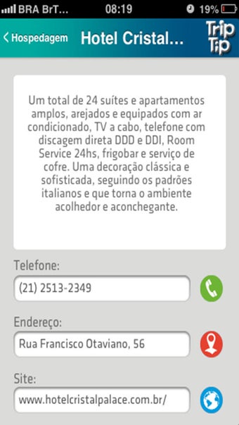 Apesar da listagem não ser das mais completas, o Trip Tip permite discar para o número de telefone do local ou consultar o endereço no aplicativo de mapas do celular facilmente. Outra vantagem é que o programa baixa a lista para o aparelho, por isso pode ser usado offline.